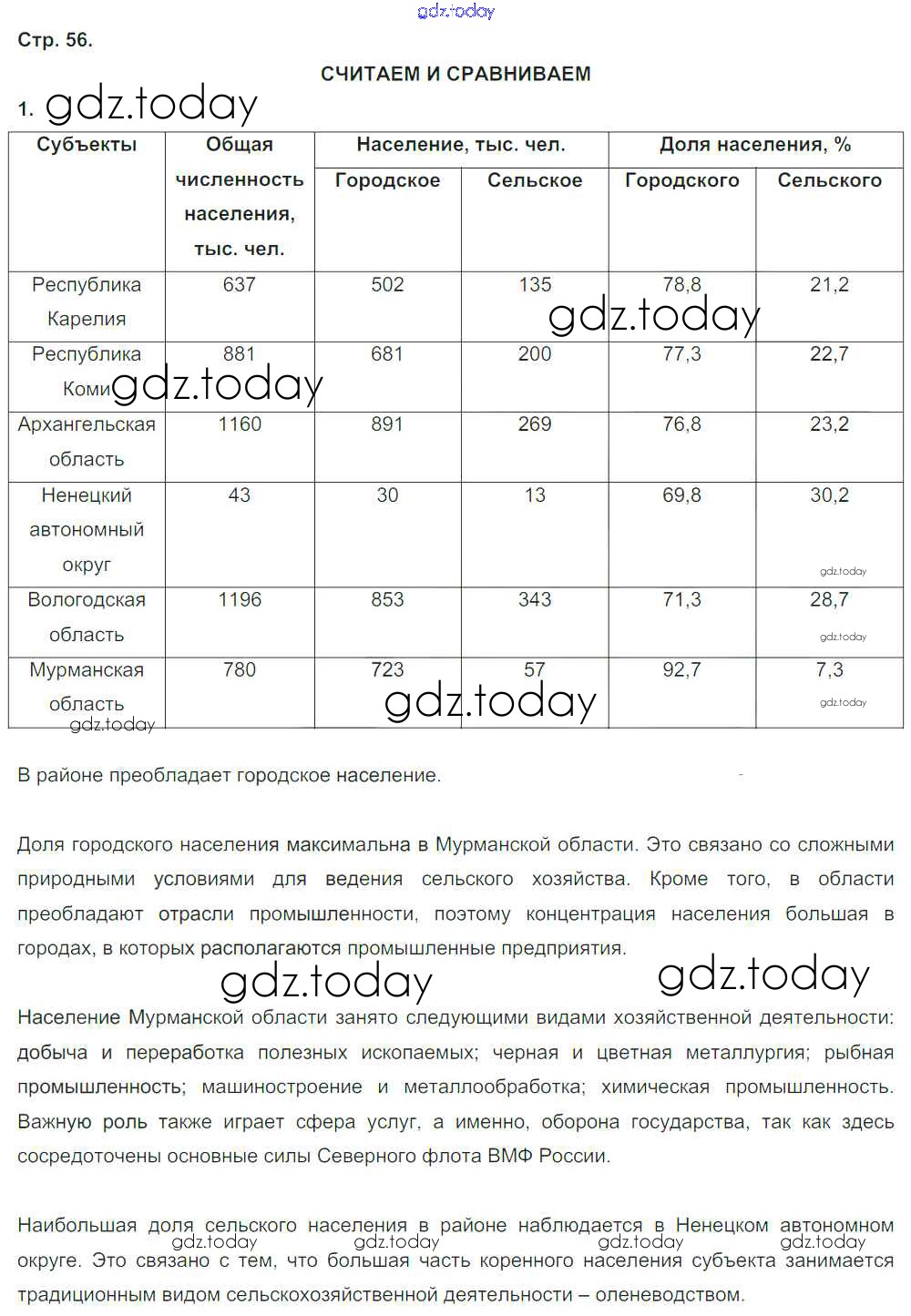 На страницах сайта gdz.today вы найдете учебный и вспомогательный материал, направленный на улучшения знаний школьной программы. ГДЗ - онлайн мир знаний Решение к главе 2. Районы России стр.56 Тетради-тренажеру по Географии для 9 класса Ходова, Ольховая Просвещение Сферы 2016