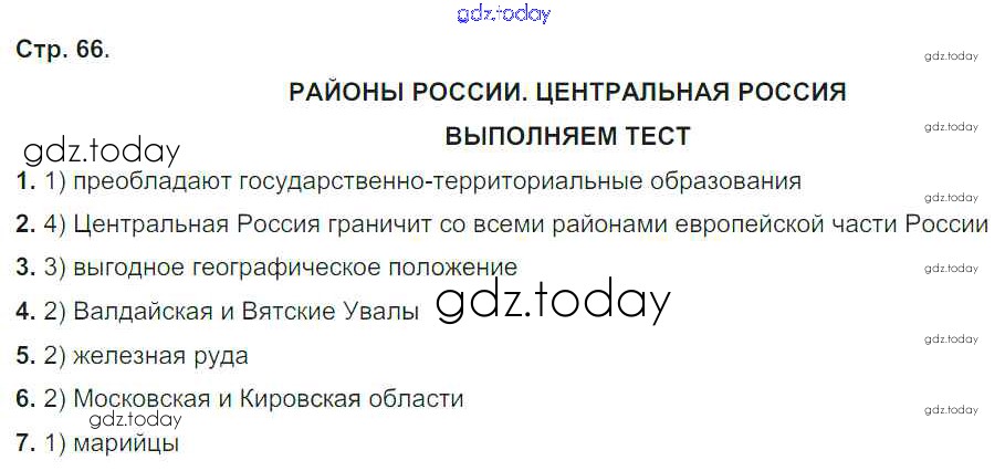 На страницах сайта gdz.today вы найдете учебный и вспомогательный материал, направленный на улучшения знаний школьной программы. ГДЗ - онлайн мир знаний Решение к главе 2. Районы России стр.66 Тетради-тренажеру по Географии для 9 класса Ходова, Ольховая Просвещение Сферы 2016