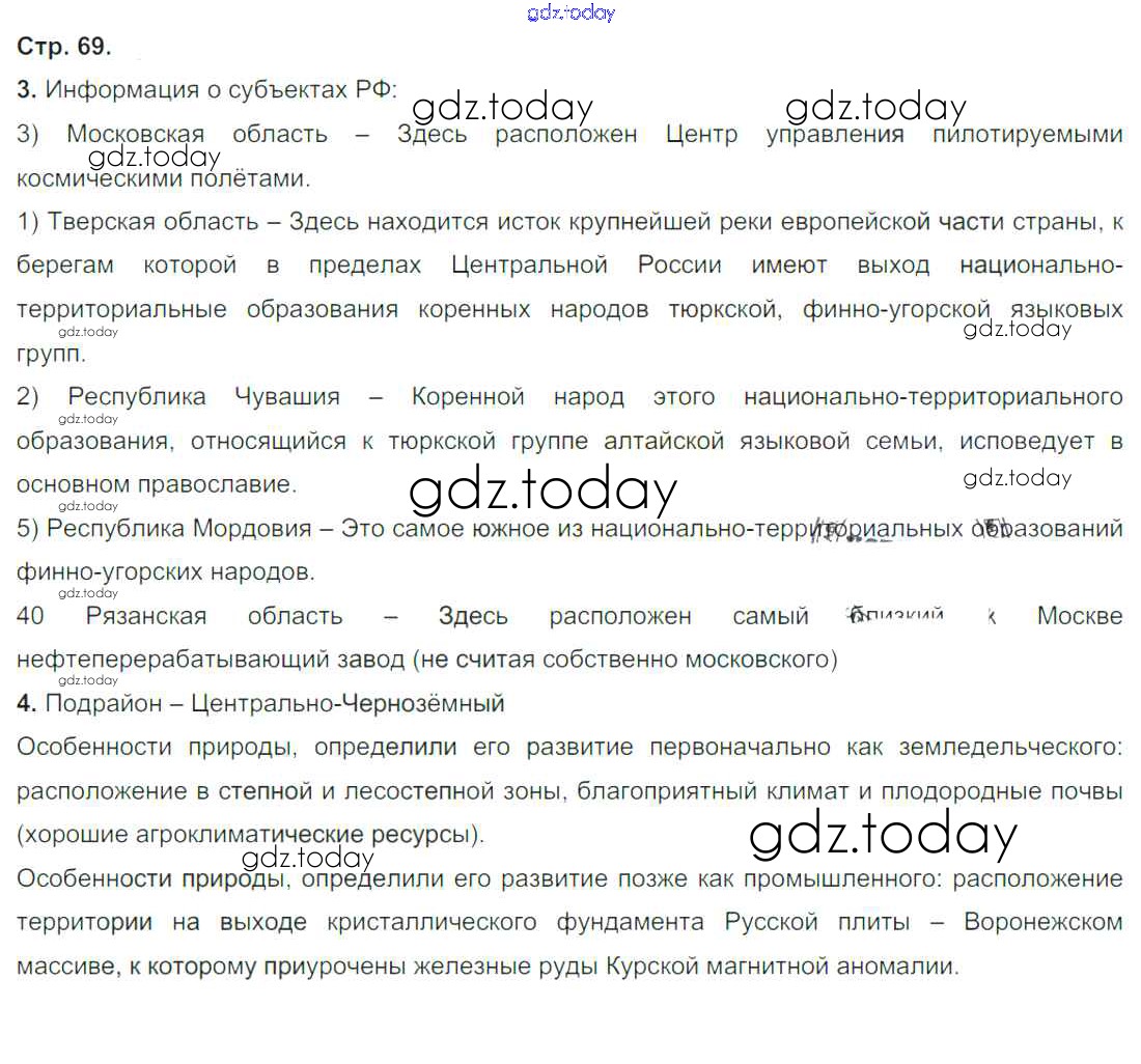 На страницах сайта gdz.today вы найдете учебный и вспомогательный материал, направленный на улучшения знаний школьной программы. ГДЗ - онлайн мир знаний Решение к главе 2. Районы России стр.69 Тетради-тренажеру по Географии для 9 класса Ходова, Ольховая Просвещение Сферы 2016