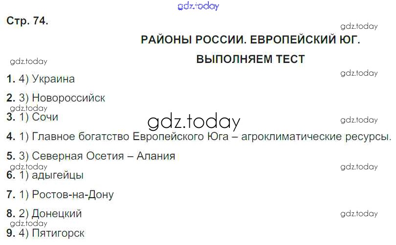 Ответы к Решение к главе 2. Районы России стр.74 Тетради-тренажеру по Географии для 9 класса Ходова, Ольховая Просвещение Сферы 2016