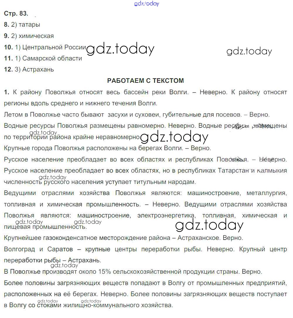 На страницах сайта gdz.today вы найдете учебный и вспомогательный материал, направленный на улучшения знаний школьной программы. ГДЗ - онлайн мир знаний Решение к главе 2. Районы России стр.83 Тетради-тренажеру по Географии для 9 класса Ходова, Ольховая Просвещение Сферы 2016