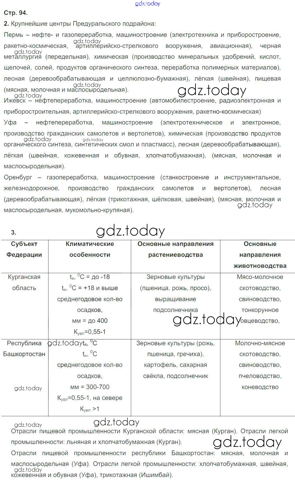 На страницах сайта gdz.today вы найдете учебный и вспомогательный материал, направленный на улучшения знаний школьной программы. ГДЗ - онлайн мир знаний Решение к главе 2. Районы России стр.94 Тетради-тренажеру по Географии для 9 класса Ходова, Ольховая Просвещение Сферы 2016
