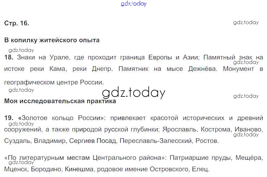 На страницах сайта gdz.today вы найдете учебный и вспомогательный материал, направленный на улучшения знаний школьной программы. ГДЗ - онлайн мир знаний Страницы (решение) 16 Тетради-тренажеру по Географии для 9 класса Николина Просвещение Полярная звезда 2016