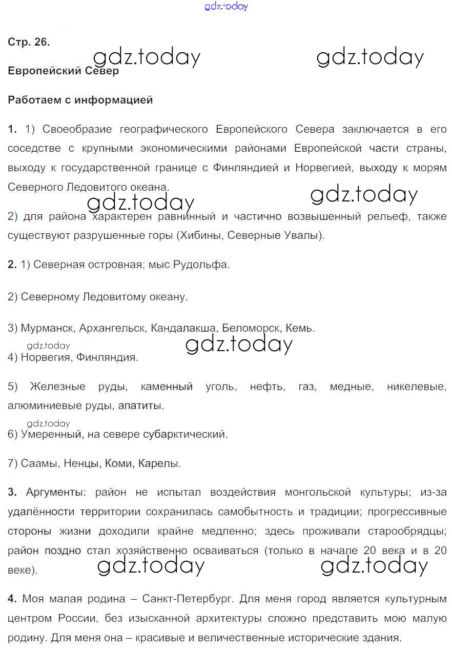 На страницах сайта gdz.today вы найдете учебный и вспомогательный материал, направленный на улучшения знаний школьной программы. ГДЗ - онлайн мир знаний Страницы (решение) 26 Тетради-тренажеру по Географии для 9 класса Николина Просвещение Полярная звезда 2016