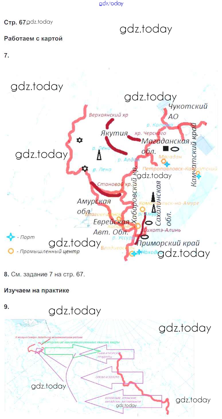 На страницах сайта gdz.today вы найдете учебный и вспомогательный материал, направленный на улучшения знаний школьной программы. ГДЗ - онлайн мир знаний Страницы (решение) 67 Тетради-тренажеру по Географии для 9 класса Николина Просвещение Полярная звезда 2016