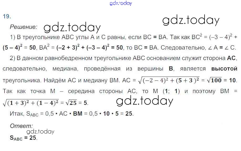 Ответы к Решение. Задачи 19 Рабочей тетради по Геометрии для 9 класса Атанасян, Бутузов Просвещение 2014