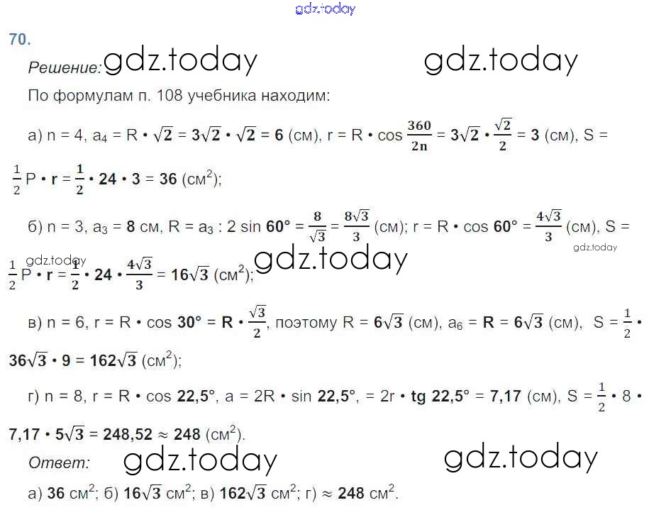 Ответы к Решение. Задачи 70 Рабочей тетради по Геометрии для 9 класса Атанасян, Бутузов Просвещение 2014