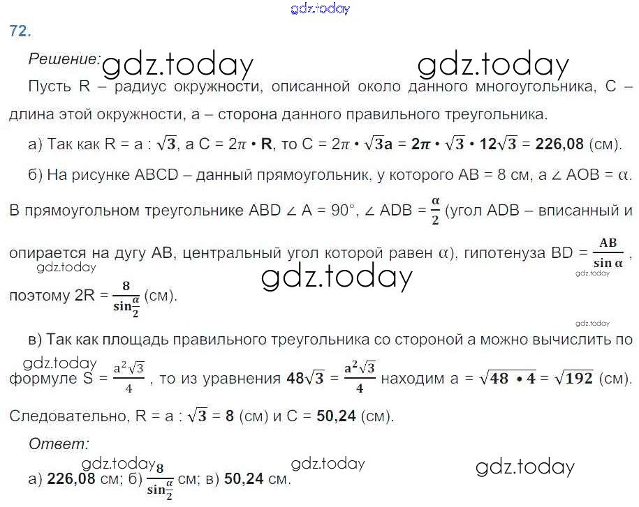 Ответы к Решение. Задачи 72 Рабочей тетради по Геометрии для 9 класса Атанасян, Бутузов Просвещение 2014