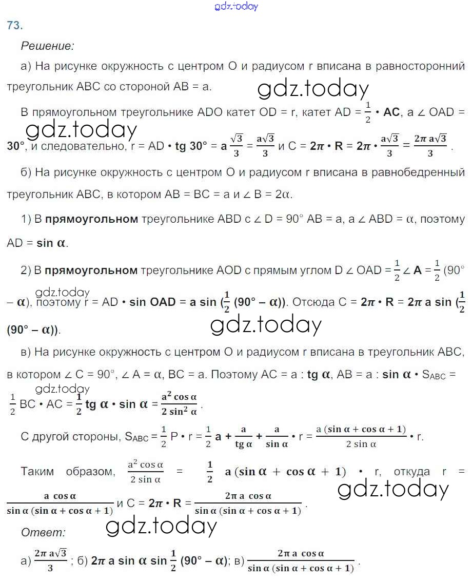 Ответы к Решение. Задачи 73 Рабочей тетради по Геометрии для 9 класса Атанасян, Бутузов Просвещение 2014
