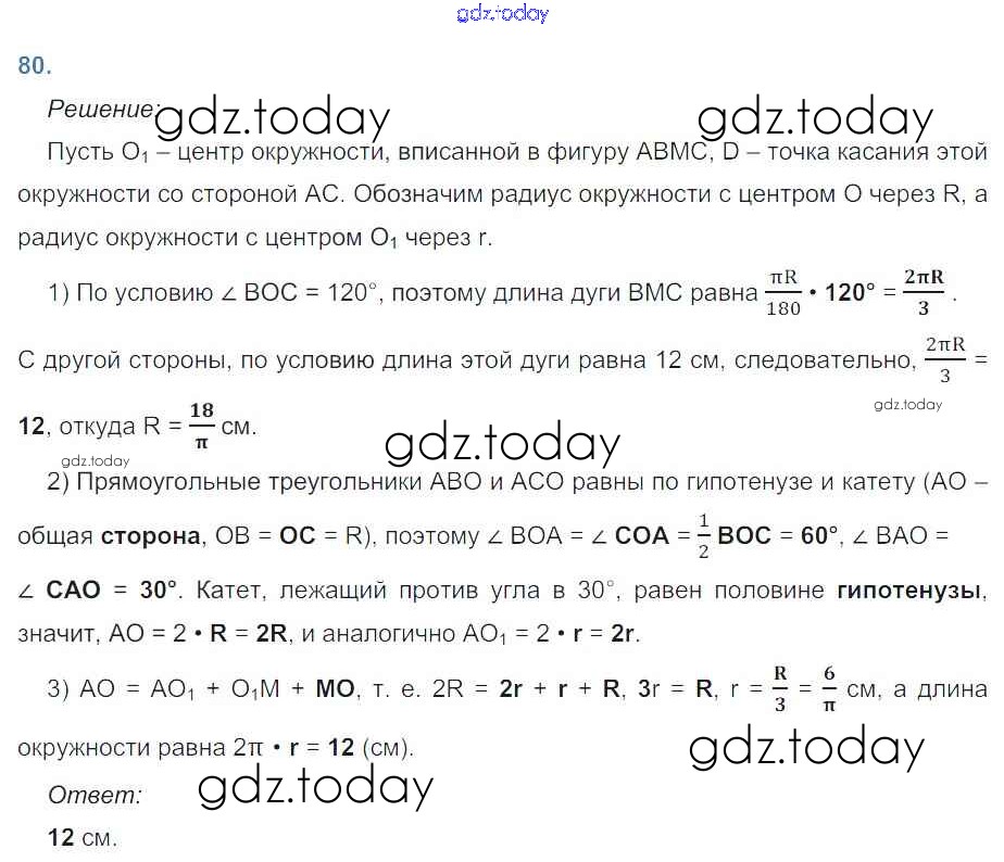 Ответы к Решение. Задачи 80 Рабочей тетради по Геометрии для 9 класса Атанасян, Бутузов Просвещение 2014