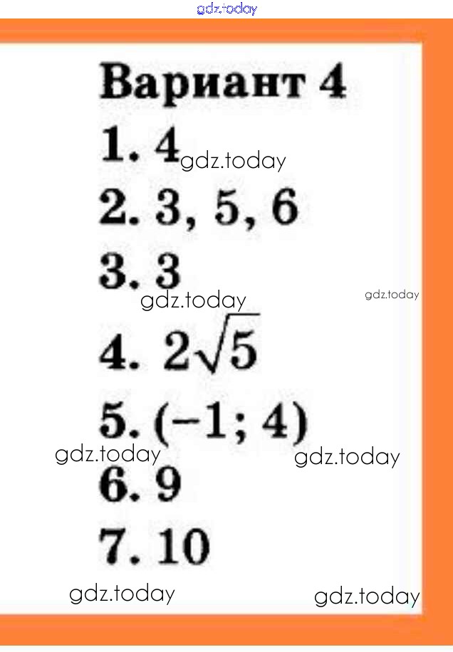 На страницах сайта gdz.today вы найдете учебный и вспомогательный материал, направленный на улучшения знаний школьной программы. ГДЗ - онлайн мир знаний Решение к контрольной работе №1 (Варианты) 4 Контрольным работам по Геометрии для 9 класса Мельникова Экзамен УМК 2019