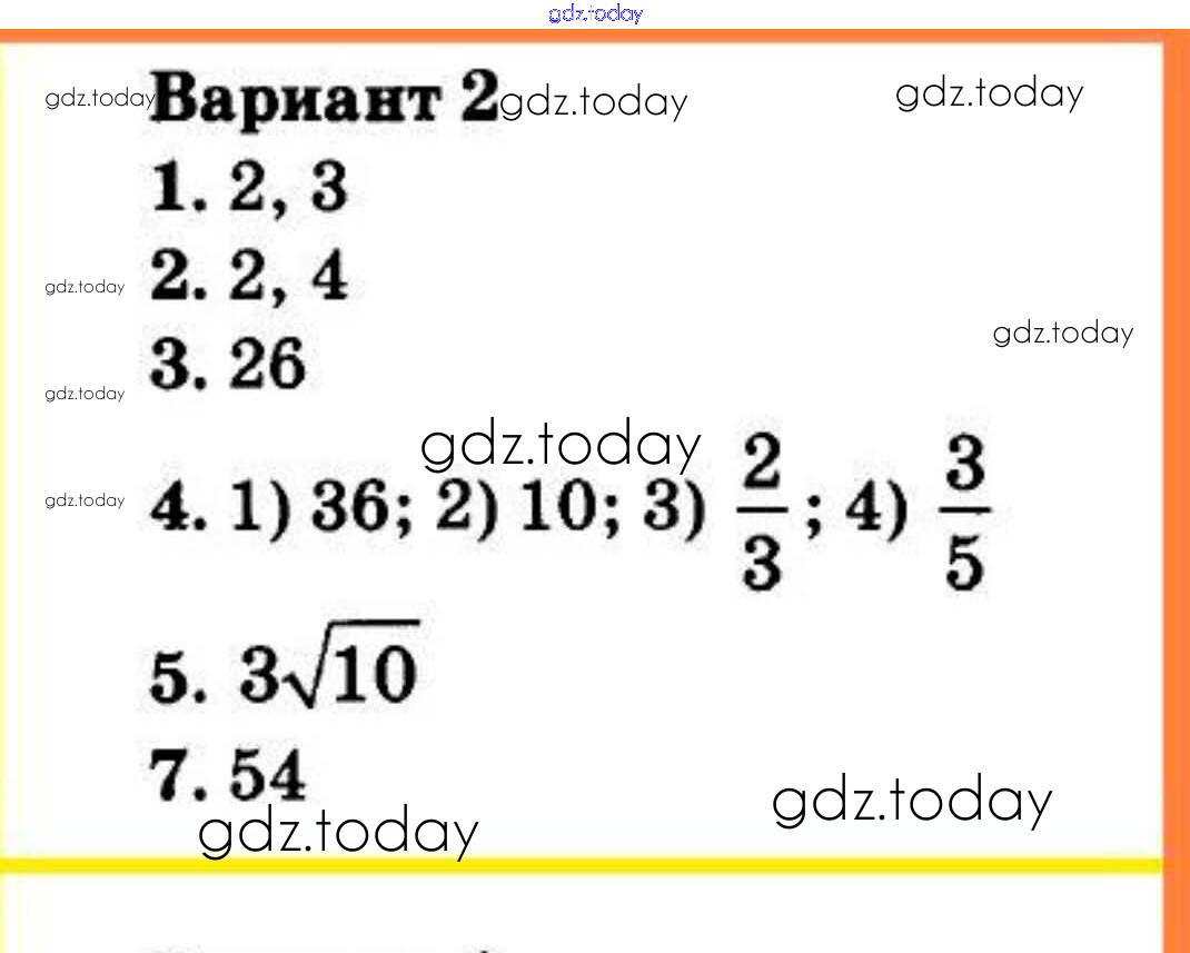 На страницах сайта gdz.today вы найдете учебный и вспомогательный материал, направленный на улучшения знаний школьной программы. ГДЗ - онлайн мир знаний Решение к контрольной работе №7 (Варианты) 2 Контрольным работам по Геометрии для 9 класса Мельникова Экзамен УМК 2019