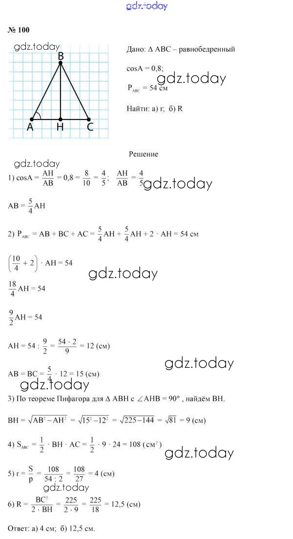 На страницах сайта gdz.today вы найдете учебный и вспомогательный материал, направленный на улучшения знаний школьной программы. ГДЗ - онлайн мир знаний Задачи (решение) 100 Учебнику по Геометрии для 9 класса Казаков Народная асвета 2019