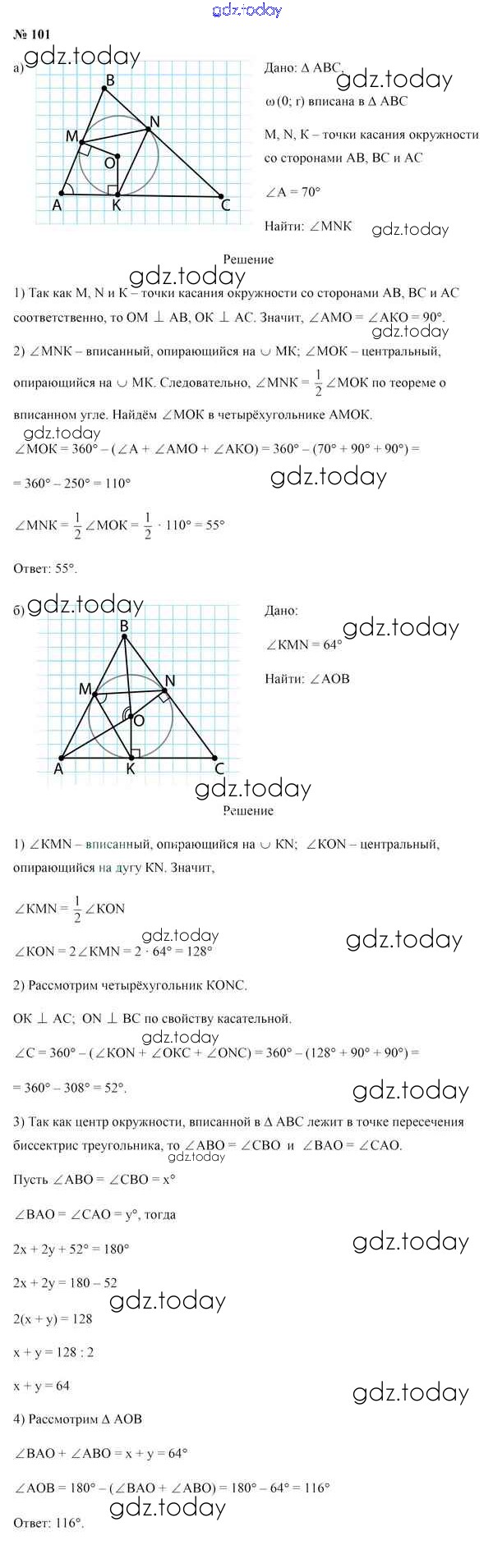 На страницах сайта gdz.today вы найдете учебный и вспомогательный материал, направленный на улучшения знаний школьной программы. ГДЗ - онлайн мир знаний Задачи (решение) 101 Учебнику по Геометрии для 9 класса Казаков Народная асвета 2019