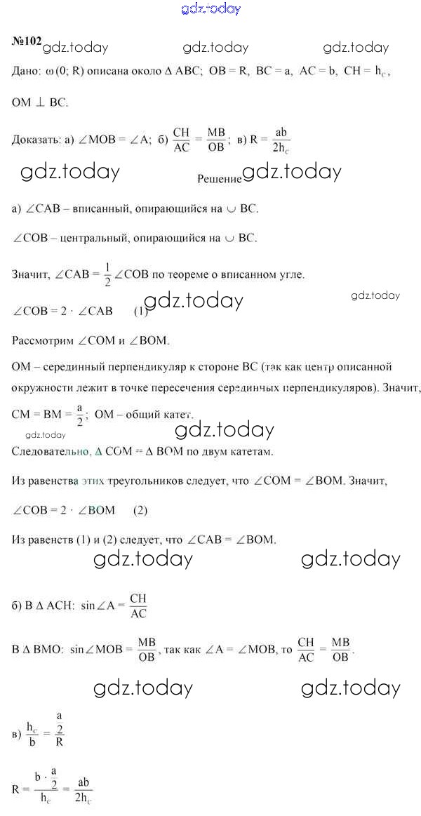 На страницах сайта gdz.today вы найдете учебный и вспомогательный материал, направленный на улучшения знаний школьной программы. ГДЗ - онлайн мир знаний Задачи (решение) 102 Учебнику по Геометрии для 9 класса Казаков Народная асвета 2019