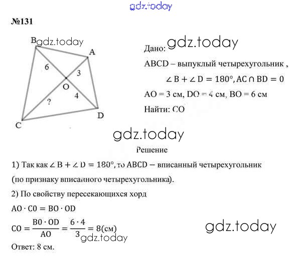 На страницах сайта gdz.today вы найдете учебный и вспомогательный материал, направленный на улучшения знаний школьной программы. ГДЗ - онлайн мир знаний Задачи (решение) 131 Учебнику по Геометрии для 9 класса Казаков Народная асвета 2019