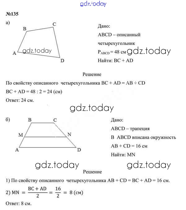 На страницах сайта gdz.today вы найдете учебный и вспомогательный материал, направленный на улучшения знаний школьной программы. ГДЗ - онлайн мир знаний Задачи (решение) 135 Учебнику по Геометрии для 9 класса Казаков Народная асвета 2019