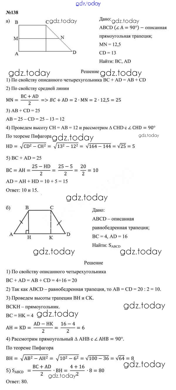 На страницах сайта gdz.today вы найдете учебный и вспомогательный материал, направленный на улучшения знаний школьной программы. ГДЗ - онлайн мир знаний Задачи (решение) 138 Учебнику по Геометрии для 9 класса Казаков Народная асвета 2019