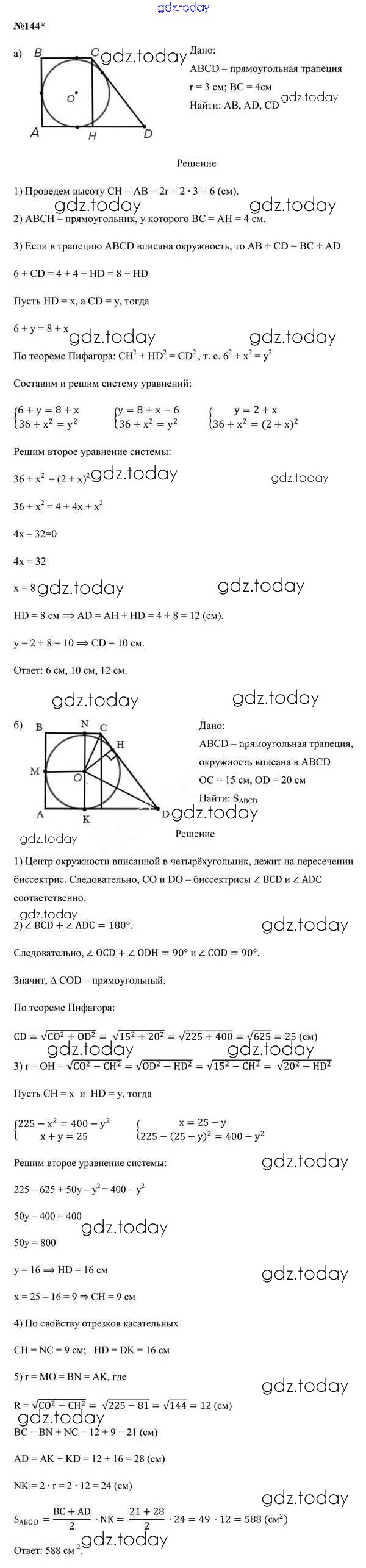 На страницах сайта gdz.today вы найдете учебный и вспомогательный материал, направленный на улучшения знаний школьной программы. ГДЗ - онлайн мир знаний Задачи (решение) 144 Учебнику по Геометрии для 9 класса Казаков Народная асвета 2019