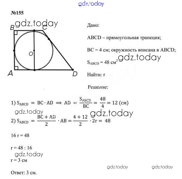 На страницах сайта gdz.today вы найдете учебный и вспомогательный материал, направленный на улучшения знаний школьной программы. ГДЗ - онлайн мир знаний Задачи (решение) 155 Учебнику по Геометрии для 9 класса Казаков Народная асвета 2019