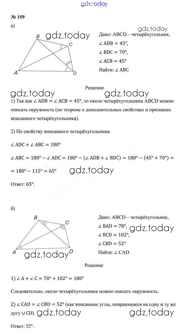На страницах сайта gdz.today вы найдете учебный и вспомогательный материал, направленный на улучшения знаний школьной программы. ГДЗ - онлайн мир знаний Задачи (решение) 159 Учебнику по Геометрии для 9 класса Казаков Народная асвета 2019