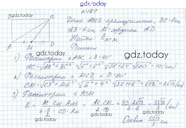 На страницах сайта gdz.today вы найдете учебный и вспомогательный материал, направленный на улучшения знаний школьной программы. ГДЗ - онлайн мир знаний Задачи (решение) 189 Учебнику по Геометрии для 9 класса Казаков Народная асвета 2019
