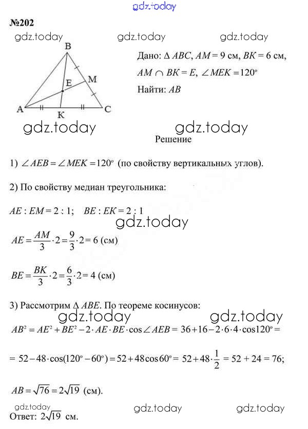 На страницах сайта gdz.today вы найдете учебный и вспомогательный материал, направленный на улучшения знаний школьной программы. ГДЗ - онлайн мир знаний Задачи (решение) 202 Учебнику по Геометрии для 9 класса Казаков Народная асвета 2019