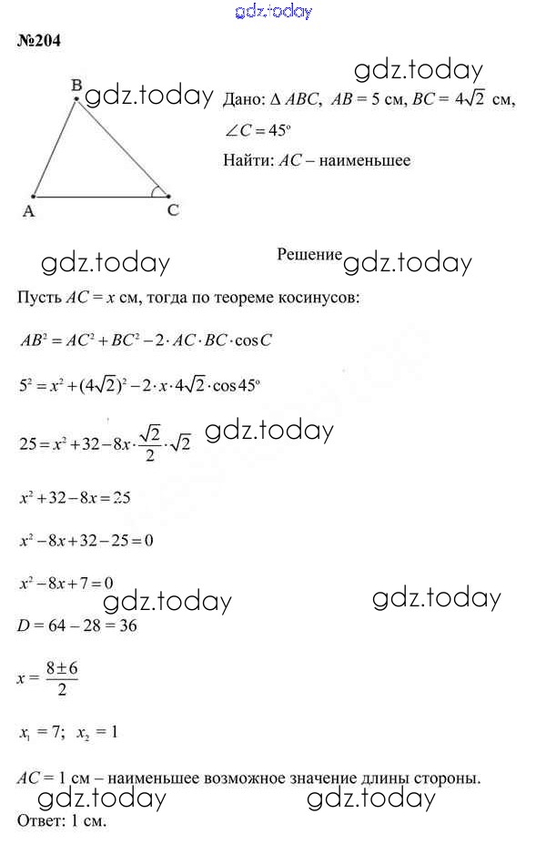 На страницах сайта gdz.today вы найдете учебный и вспомогательный материал, направленный на улучшения знаний школьной программы. ГДЗ - онлайн мир знаний Задачи (решение) 204 Учебнику по Геометрии для 9 класса Казаков Народная асвета 2019