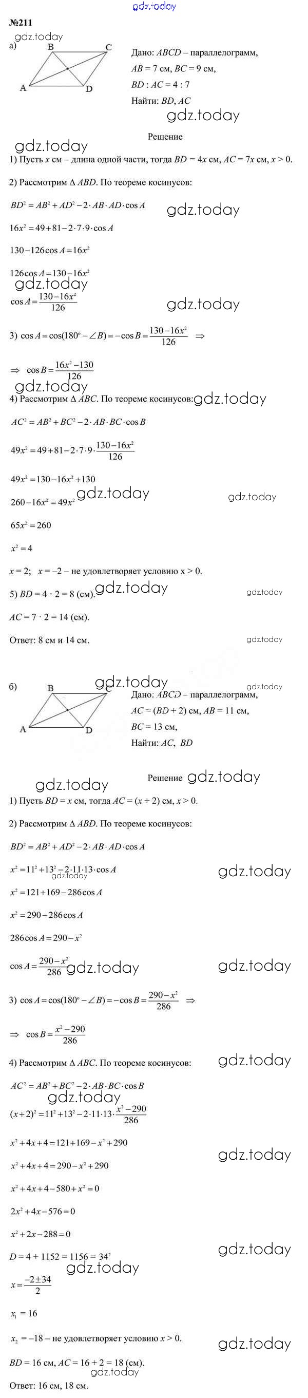 На страницах сайта gdz.today вы найдете учебный и вспомогательный материал, направленный на улучшения знаний школьной программы. ГДЗ - онлайн мир знаний Задачи (решение) 211 Учебнику по Геометрии для 9 класса Казаков Народная асвета 2019