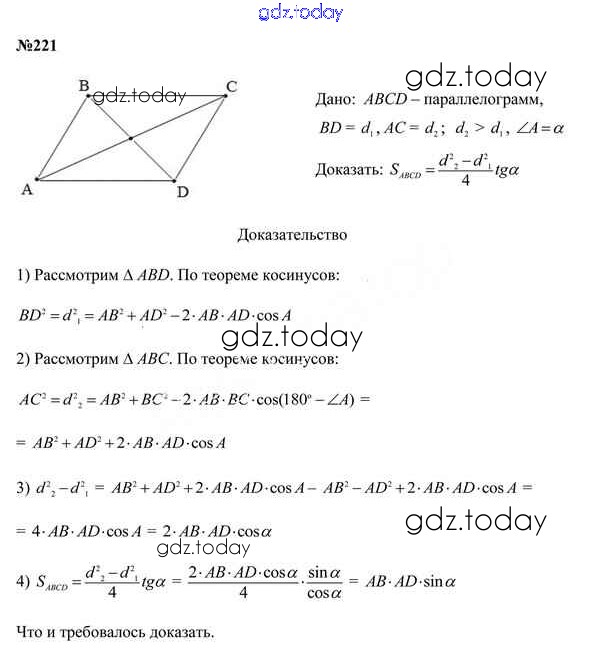 На страницах сайта gdz.today вы найдете учебный и вспомогательный материал, направленный на улучшения знаний школьной программы. ГДЗ - онлайн мир знаний Задачи (решение) 221 Учебнику по Геометрии для 9 класса Казаков Народная асвета 2019