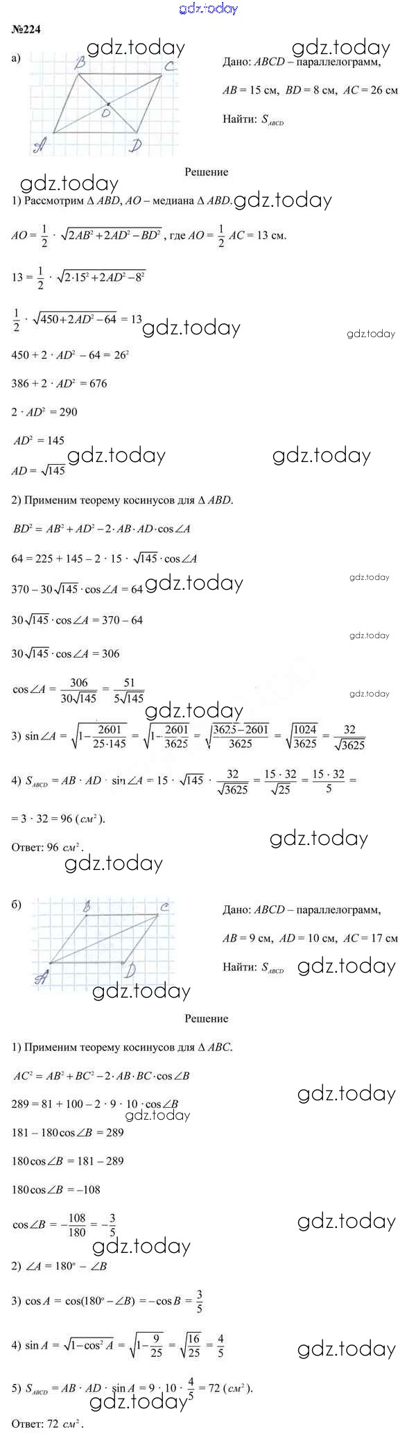 На страницах сайта gdz.today вы найдете учебный и вспомогательный материал, направленный на улучшения знаний школьной программы. ГДЗ - онлайн мир знаний Задачи (решение) 224 Учебнику по Геометрии для 9 класса Казаков Народная асвета 2019