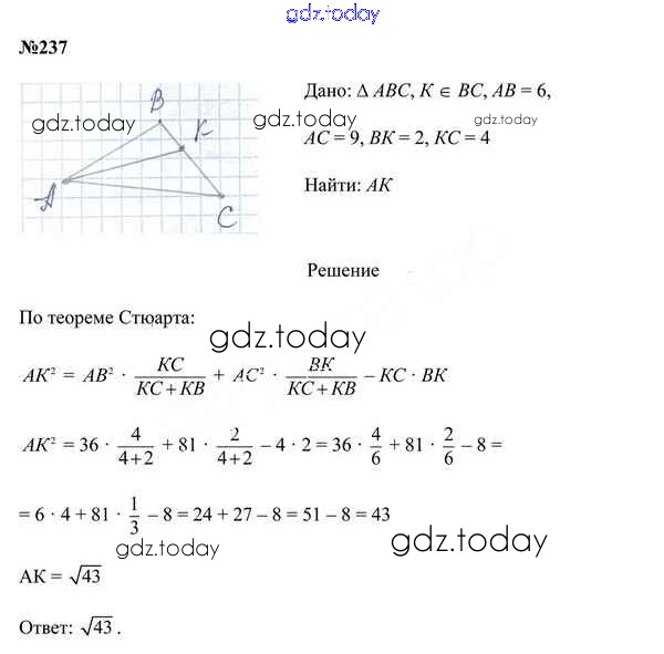 На страницах сайта gdz.today вы найдете учебный и вспомогательный материал, направленный на улучшения знаний школьной программы. ГДЗ - онлайн мир знаний Задачи (решение) 237 Учебнику по Геометрии для 9 класса Казаков Народная асвета 2019
