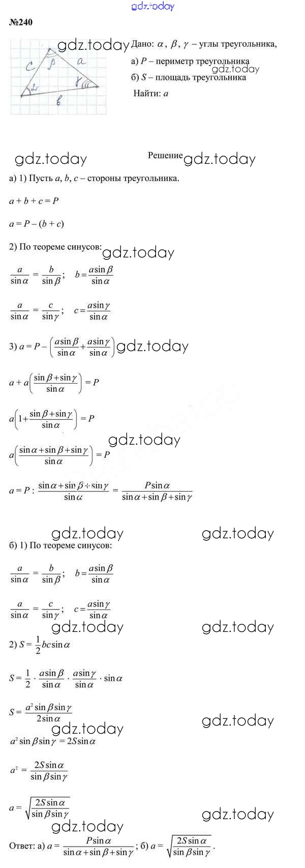На страницах сайта gdz.today вы найдете учебный и вспомогательный материал, направленный на улучшения знаний школьной программы. ГДЗ - онлайн мир знаний Задачи (решение) 240 Учебнику по Геометрии для 9 класса Казаков Народная асвета 2019