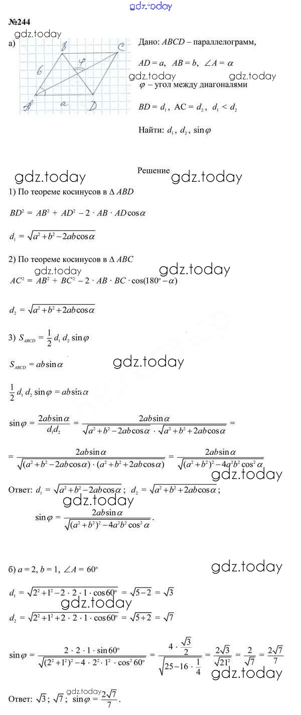 На страницах сайта gdz.today вы найдете учебный и вспомогательный материал, направленный на улучшения знаний школьной программы. ГДЗ - онлайн мир знаний Задачи (решение) 244 Учебнику по Геометрии для 9 класса Казаков Народная асвета 2019