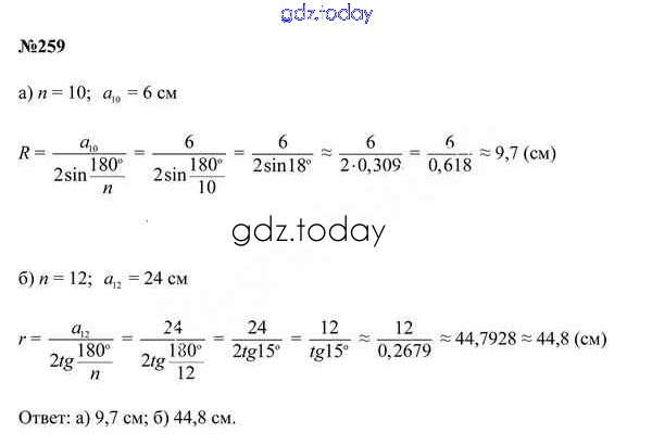 Ответы к Задачи (решение) 259 Учебнику по Геометрии для 9 класса Казаков Народная асвета 2019
