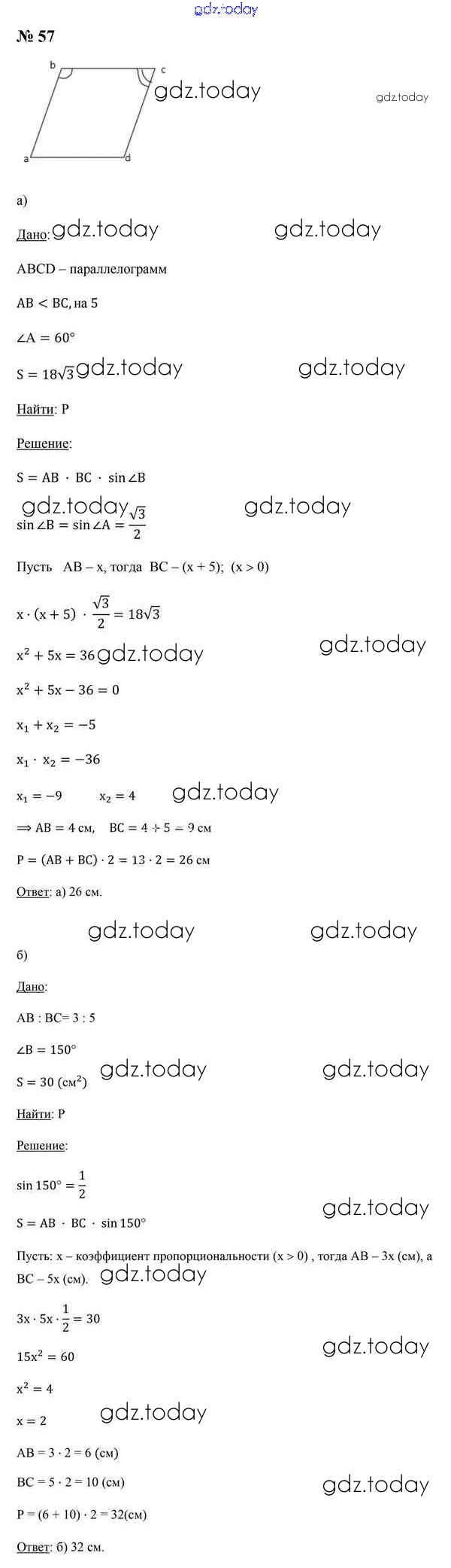 На страницах сайта gdz.today вы найдете учебный и вспомогательный материал, направленный на улучшения знаний школьной программы. ГДЗ - онлайн мир знаний Задачи (решение) 57 Учебнику по Геометрии для 9 класса Казаков Народная асвета 2019