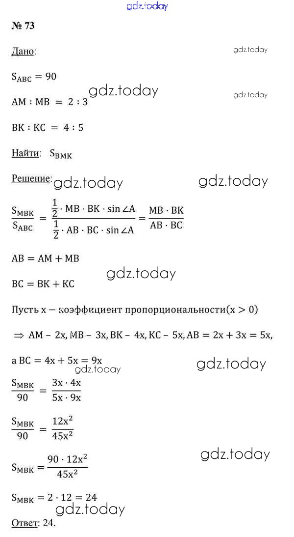 На страницах сайта gdz.today вы найдете учебный и вспомогательный материал, направленный на улучшения знаний школьной программы. ГДЗ - онлайн мир знаний Задачи (решение) 73 Учебнику по Геометрии для 9 класса Казаков Народная асвета 2019