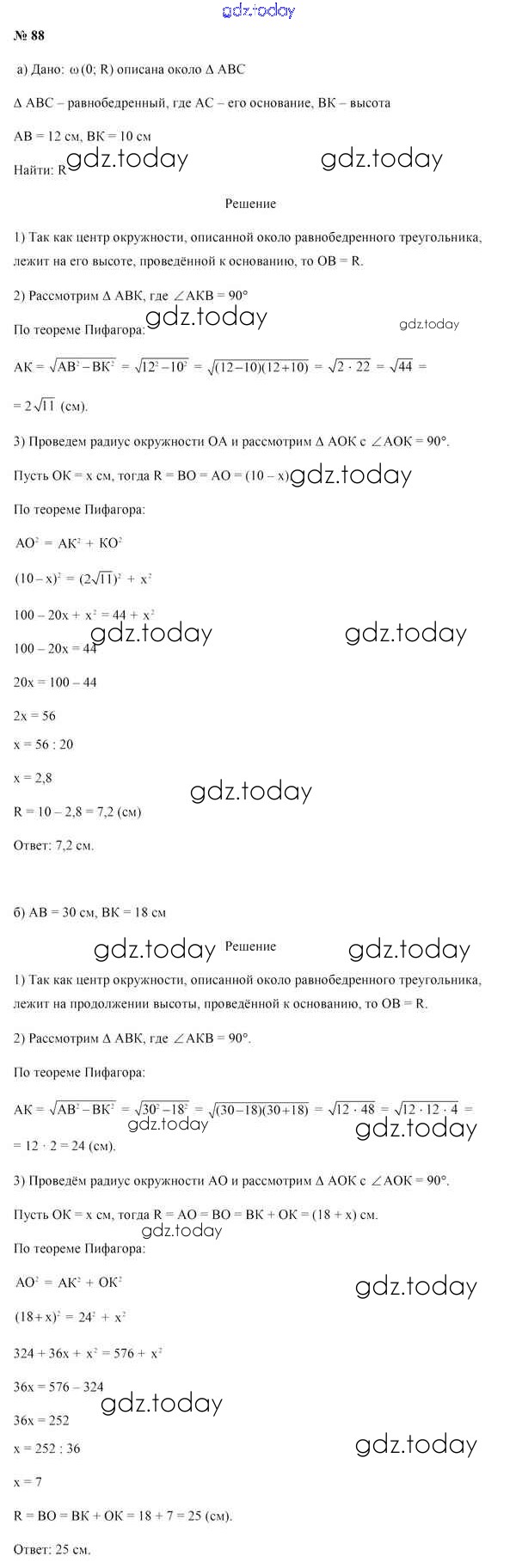 На страницах сайта gdz.today вы найдете учебный и вспомогательный материал, направленный на улучшения знаний школьной программы. ГДЗ - онлайн мир знаний Задачи (решение) 88 Учебнику по Геометрии для 9 класса Казаков Народная асвета 2019