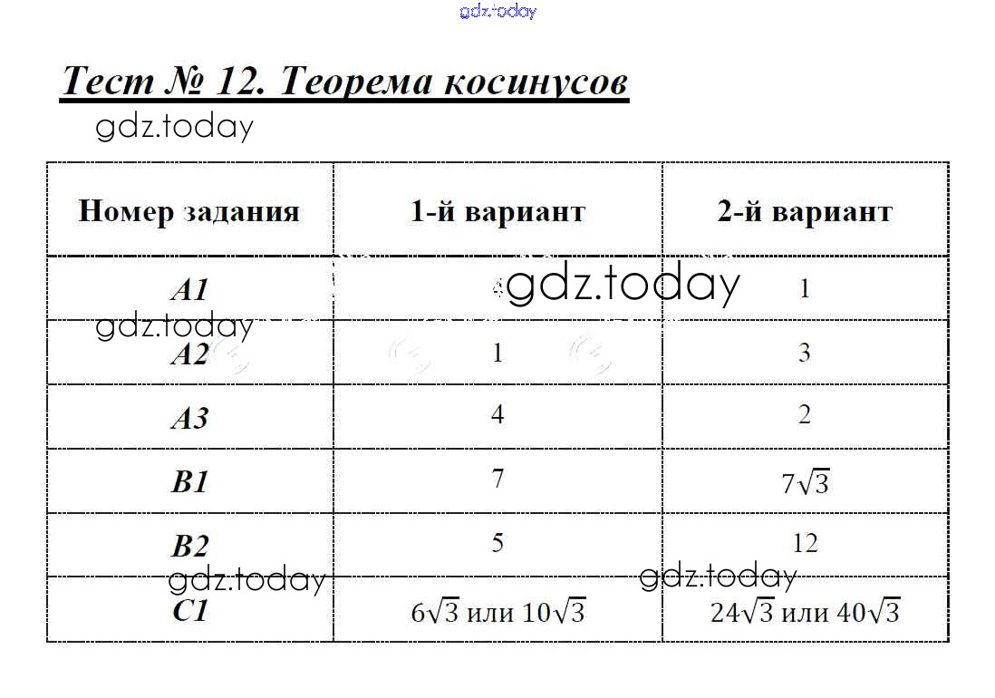 На страницах сайта gdz.today вы найдете учебный и вспомогательный материал, направленный на улучшения знаний школьной программы. ГДЗ - онлайн мир знаний Решение к тестам 12 Контрольно-измерительным материалам (КИМ) по Геометрии для 9 класса Рурукин ВАКО 2016