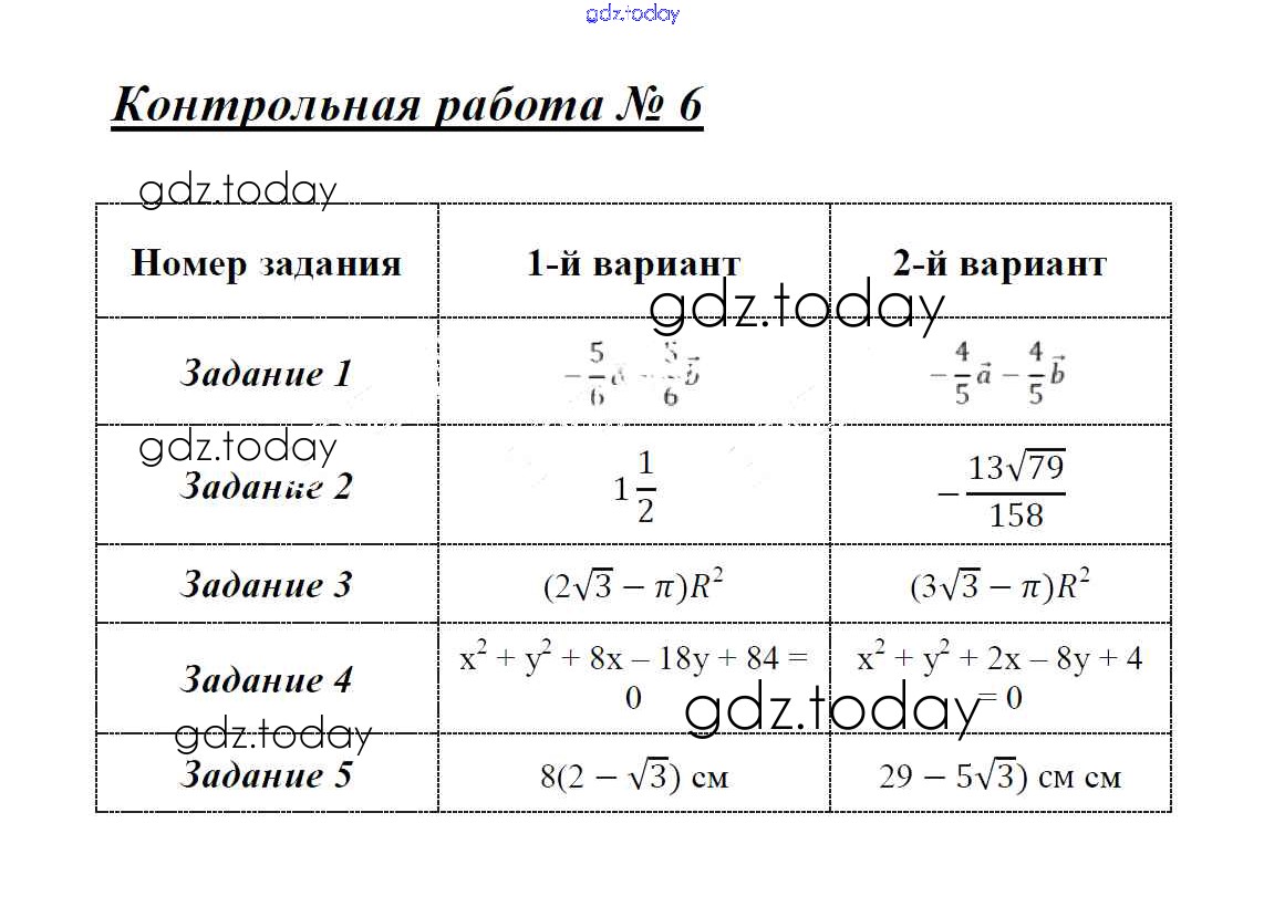 На страницах сайта gdz.today вы найдете учебный и вспомогательный материал, направленный на улучшения знаний школьной программы. ГДЗ - онлайн мир знаний Решение к контрольным работам 6 Контрольно-измерительным материалам (КИМ) по Геометрии для 9 класса Рурукин ВАКО 2016