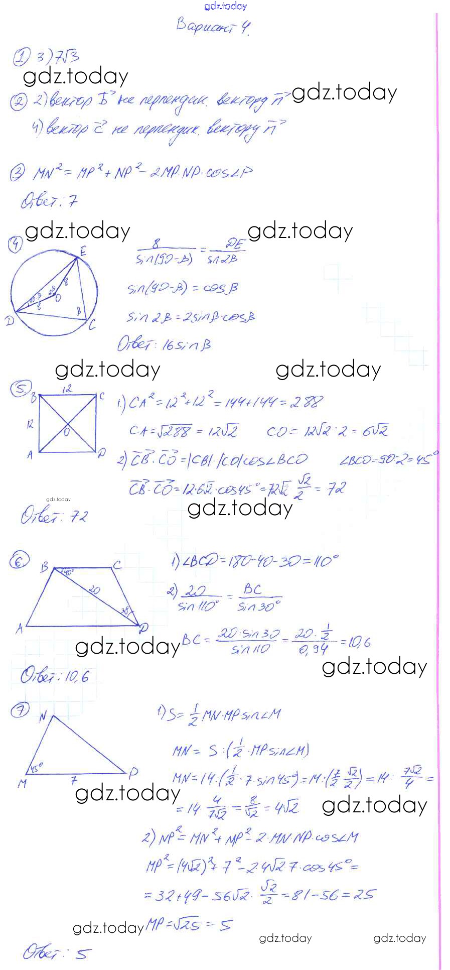 На страницах сайта gdz.today вы найдете учебный и вспомогательный материал, направленный на улучшения знаний школьной программы. ГДЗ - онлайн мир знаний Решение к контрольной работе №2. Варианты 5 Контрольным работам по Геометрии для 9 класса Мельникова Экзамен УМК 2016