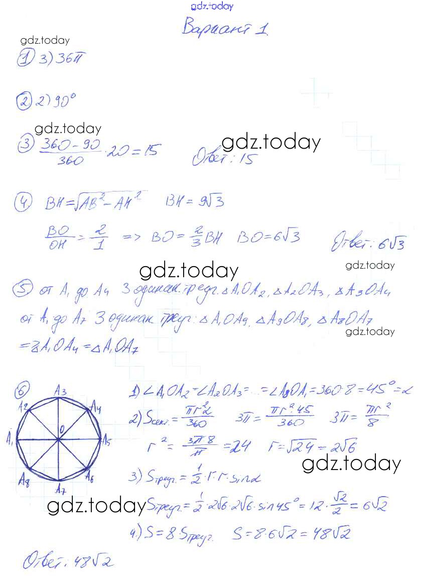Ответы к Решение к контрольной работе №3. Варианты 2 Контрольным работам по Геометрии для 9 класса Мельникова Экзамен УМК 2016