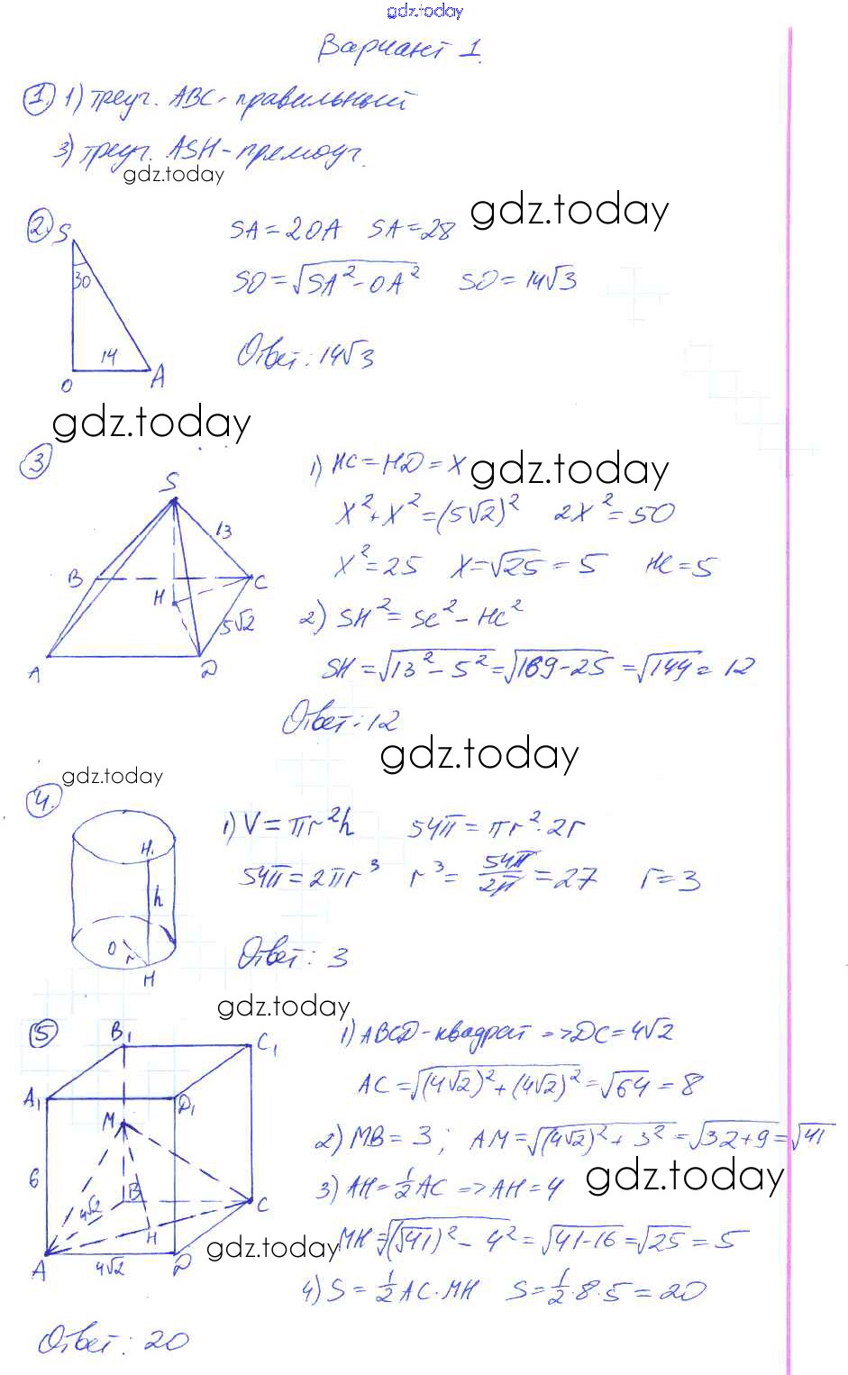 Ответы к Решение к контрольной работе №5. Варианты 2 Контрольным работам по Геометрии для 9 класса Мельникова Экзамен УМК 2016