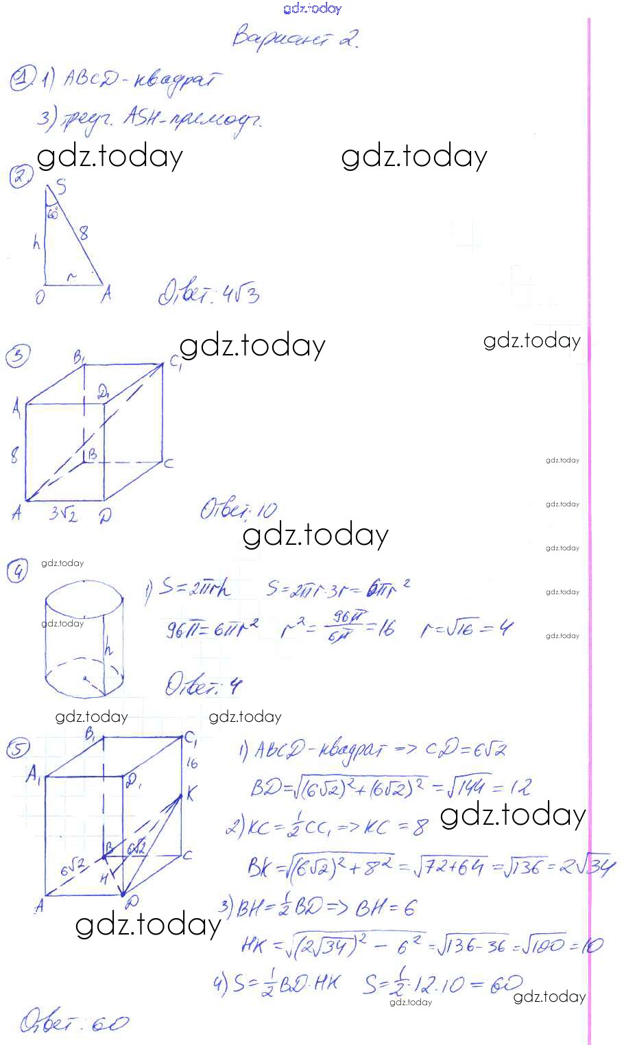 На страницах сайта gdz.today вы найдете учебный и вспомогательный материал, направленный на улучшения знаний школьной программы. ГДЗ - онлайн мир знаний Решение к контрольной работе №5. Варианты 3 Контрольным работам по Геометрии для 9 класса Мельникова Экзамен УМК 2016