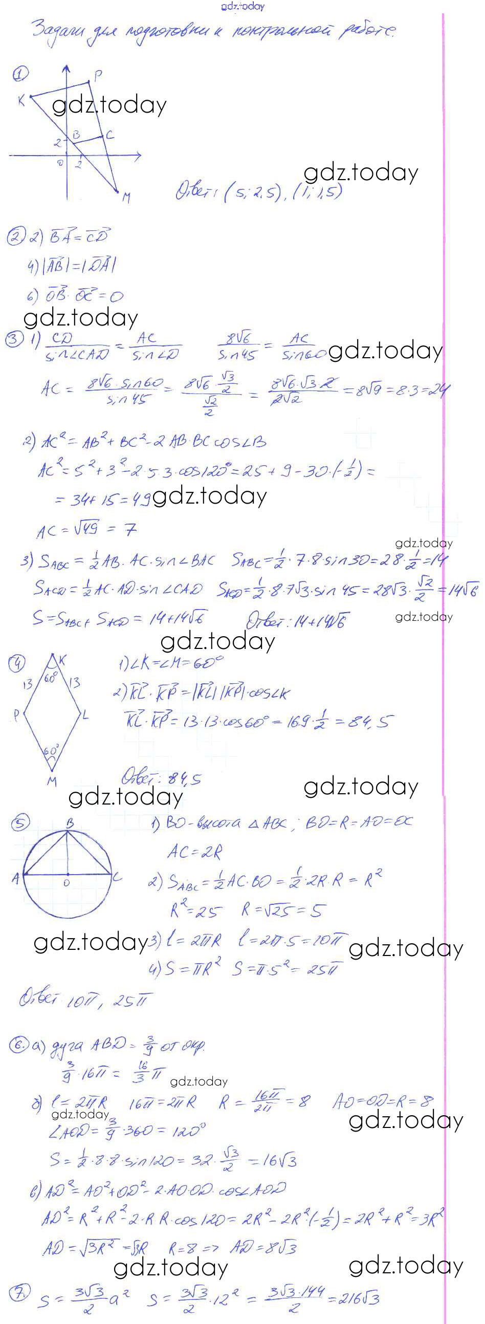 На страницах сайта gdz.today вы найдете учебный и вспомогательный материал, направленный на улучшения знаний школьной программы. ГДЗ - онлайн мир знаний Решение к контрольной работе №6. Варианты 1 Контрольным работам по Геометрии для 9 класса Мельникова Экзамен УМК 2016