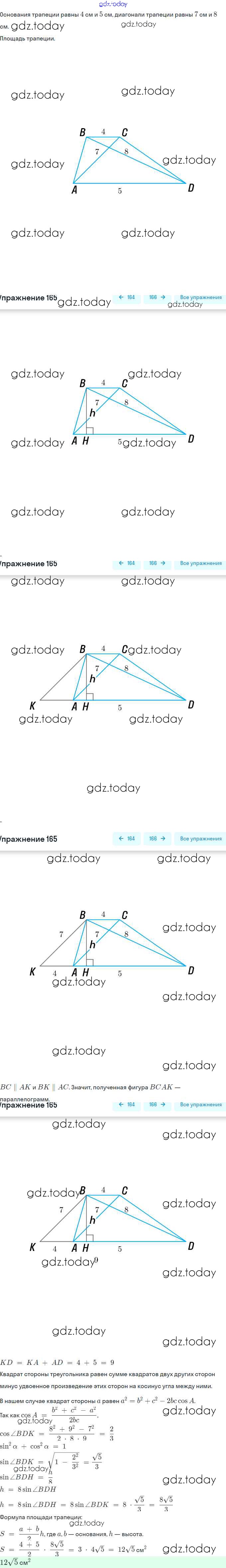 Ответы к Решение. Задачи 165 Учебнику по Геометрии для 9 класса Мерзляк, Полонский Вентана-граф, Просвещение 2016, 2023