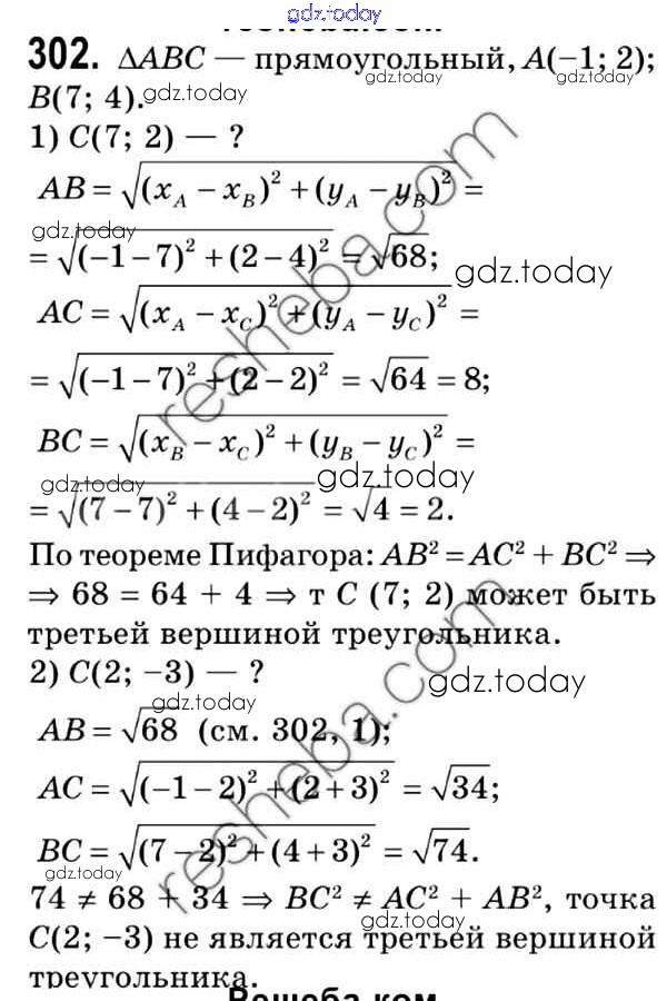 На страницах сайта gdz.today вы найдете учебный и вспомогательный материал, направленный на улучшения знаний школьной программы. ГДЗ - онлайн мир знаний Решение. Задачи 302 Учебнику по Геометрии для 9 класса Мерзляк, Полонский Вентана-граф, Просвещение 2016, 2023
