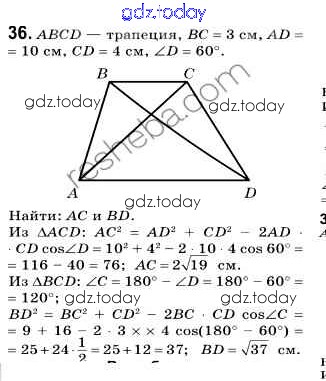 Ответы к Решение. Задачи 36 Учебнику по Геометрии для 9 класса Мерзляк, Полонский Вентана-граф, Просвещение 2016, 2023