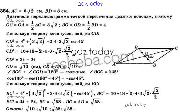 На страницах сайта gdz.today вы найдете учебный и вспомогательный материал, направленный на улучшения знаний школьной программы. ГДЗ - онлайн мир знаний Решение. Задачи 384 Учебнику по Геометрии для 9 класса Мерзляк, Полонский Вентана-граф, Просвещение 2016, 2023
