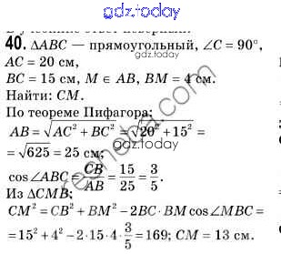 Ответы к Решение. Задачи 40 Учебнику по Геометрии для 9 класса Мерзляк, Полонский Вентана-граф, Просвещение 2016, 2023